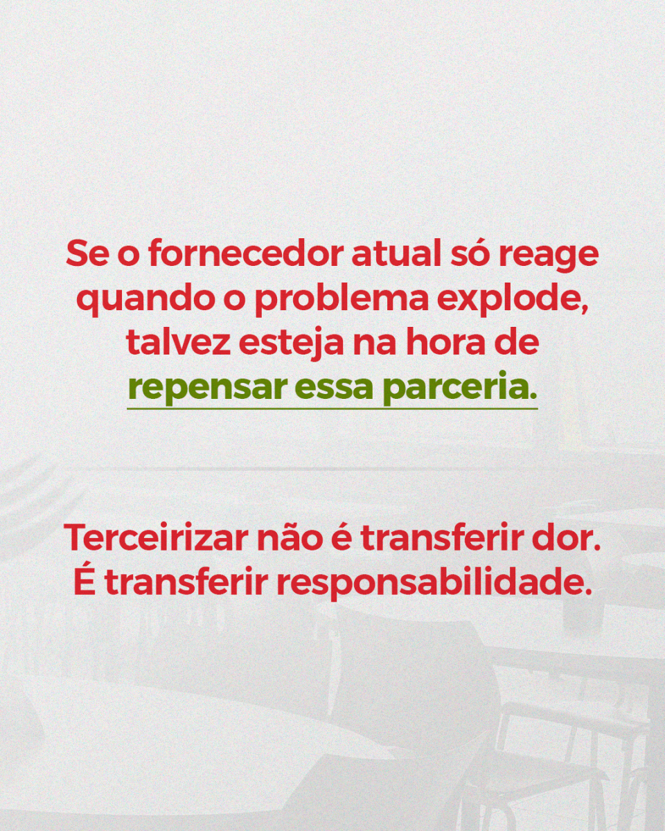 Terceirizar deveria significar menos preocupação para o RH, menos desgaste para o facilities e mais satisfação para o colaborador. Quando isso não acontece, o problema não está na terceirização – está na forma como ela é conduzida.