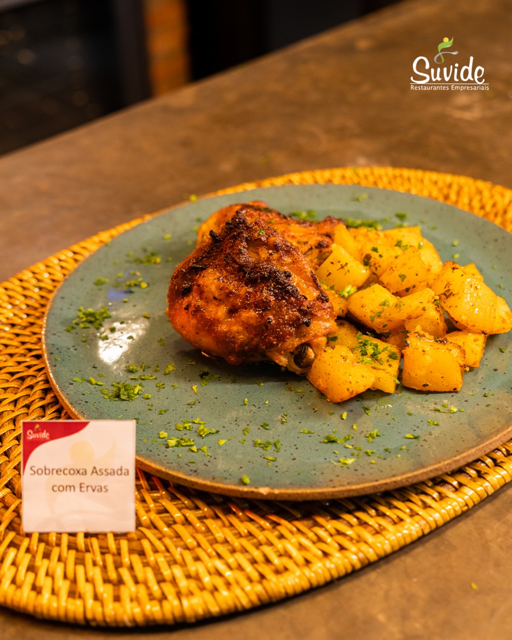 Sobrecoxa assada com ervas finas e batatas rústicas crocantes: um clássico reinventado!