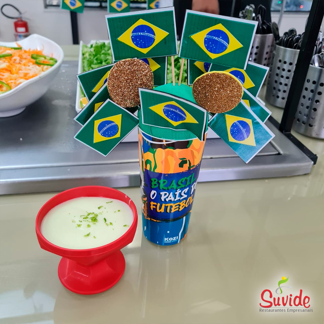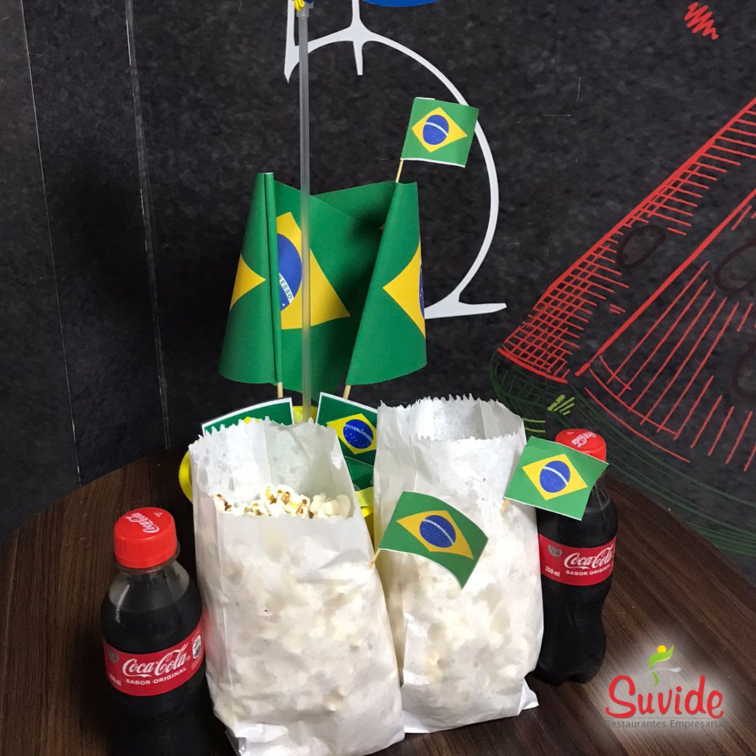 Confira a DECORAÇÃO do ambiente, as COMIDAS servidas e o KIT COPA DO MUNDO que os clientes contrataram para assistir aos jogos. Também foi distribuído como BRINDE 1 álbum da copa com 4 pacotinhos de figurinhas para sortear entre os funcionários.