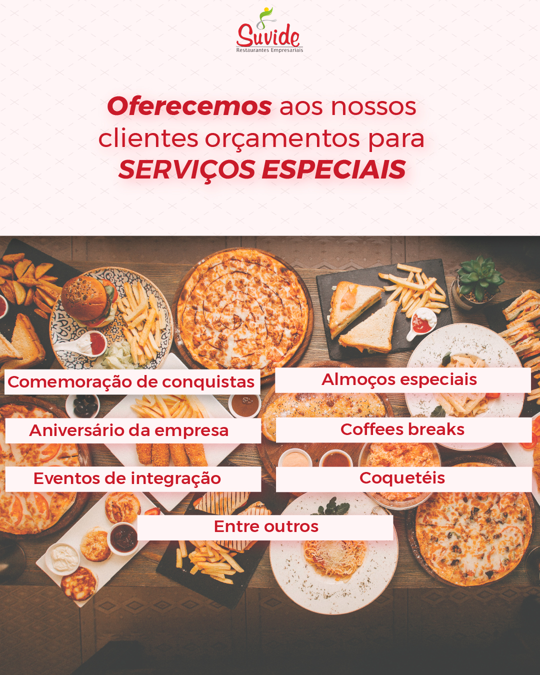 Além do nosso compromisso diário em oferecer refeições, a Suvide também se dedica a oferecer orçamentos personalizados para nossos clientes, atendendo a necessidades especiais como: