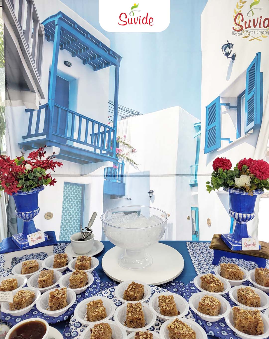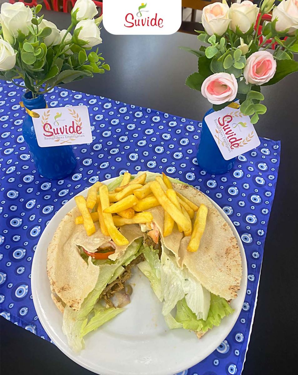 Desfrutem das delícias gastronômicas, como o gyros, que é um lanche recheado com carne suína, cebola roxa, batata frita e outros ingredientes irresistíveis no pão pita! Para a sobremesa, um bolo de nozes acompanhado de sorvete de iogurte e mel.