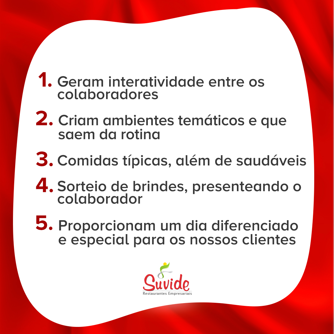 Os EVENTOS podem abordar diversos temas, contando sempre com COMIDAS DELICIOSAS, DECORAÇÕES INTERATIVAS, SORTEIOS, entre outras atividades.