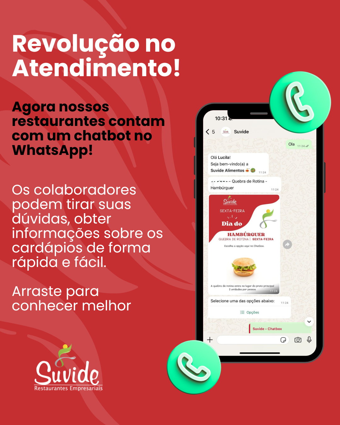Para transformar essa realidade, a Suvide oferece um ChatBot exclusivo no WhatsApp, que traz praticidade e eficiência para a rotina das empresas e de seus colaboradores.