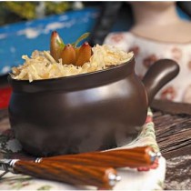 Com o pinhão cozido e limpo, triture-o rapidamente no processador. Ao fogo médio com 1 colher de manteiga de garrafa, deixe o pinhão fritar ligeiramente e separe.