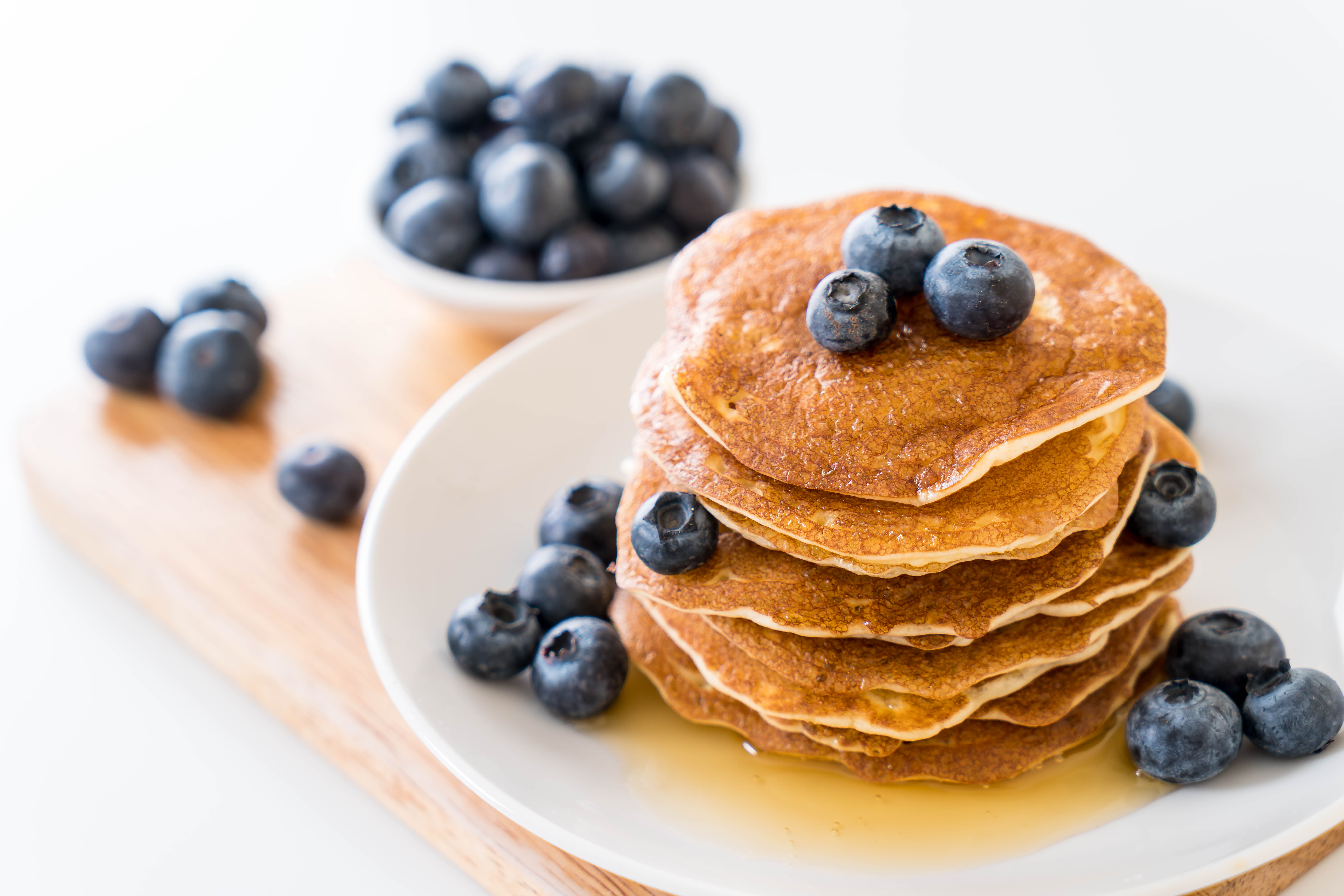 Sirva as panquecas quentes com mais mirtilos, mel, xarope de bordo ou um pouco de iogurte. Incremente com sabor!