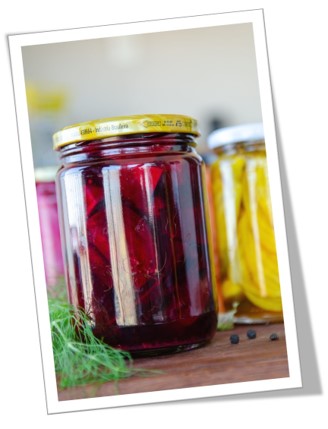 Adicione nos potes de vidro a beterraba cortada ou fatiada, adicione as especiarias e temperos, cebola e alho em camadas, e adicione por cima com a ajuda de um funil o líquido da salmoura ainda quente, dê leves batidinhas do vidro contra a mesa para que saia todo o ar que possa ter ficado entre as fatias de beterraba, se ainda restar bolhas de ar, com auxílio de um hashi, mergulhe-o até chegar proximo da bolha para que ela escape, tampe com o líquido ainda quente